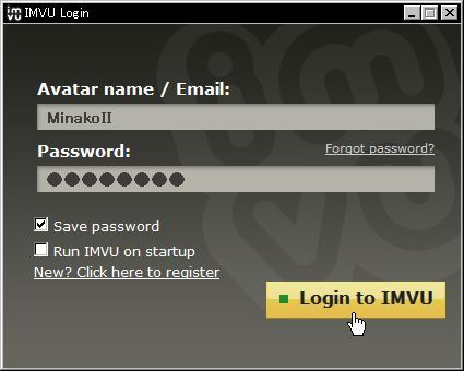 あとは、「Login to IMVU」ボタンを押すだけです♪