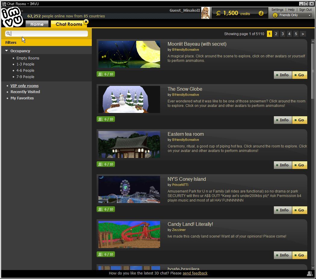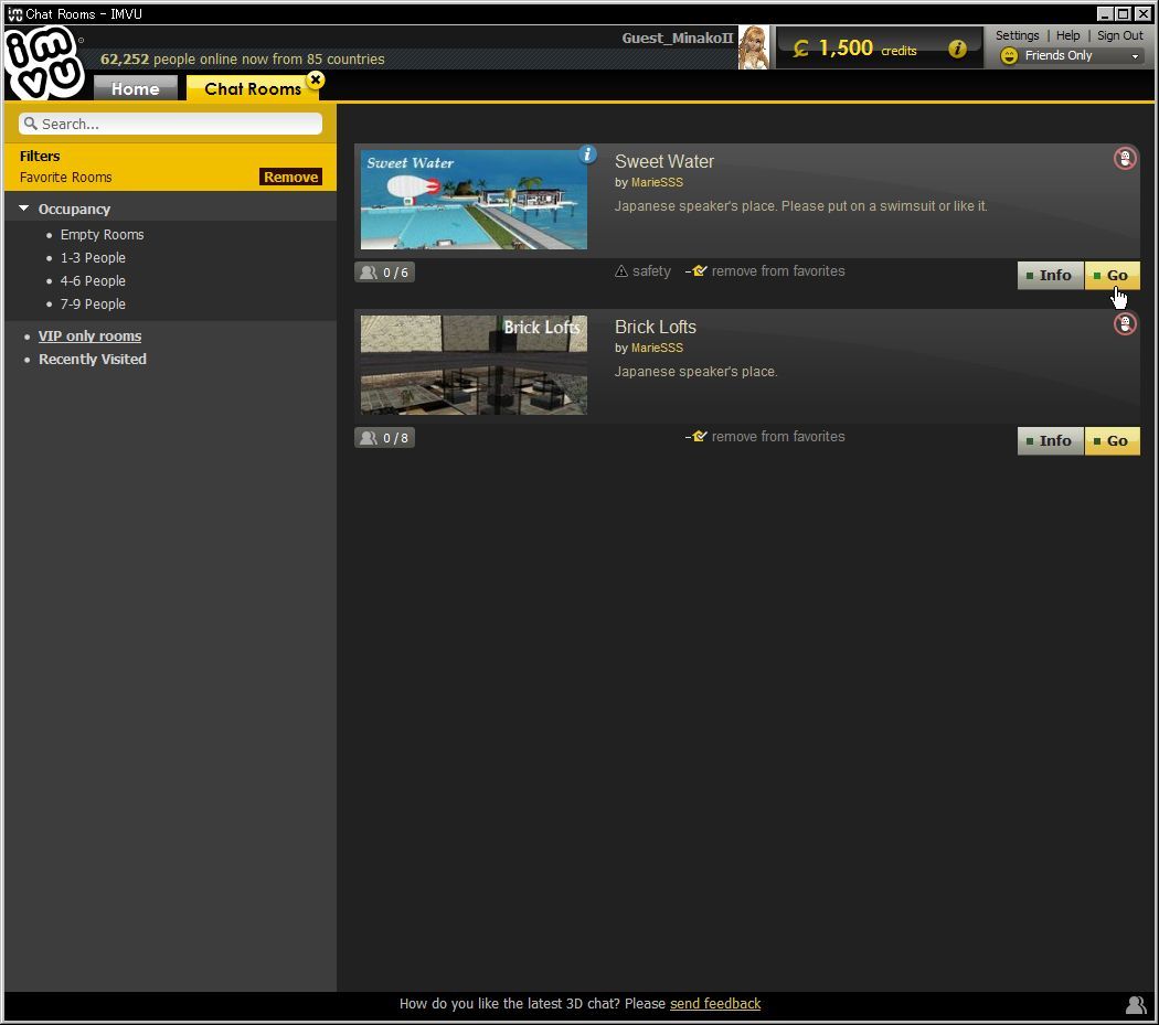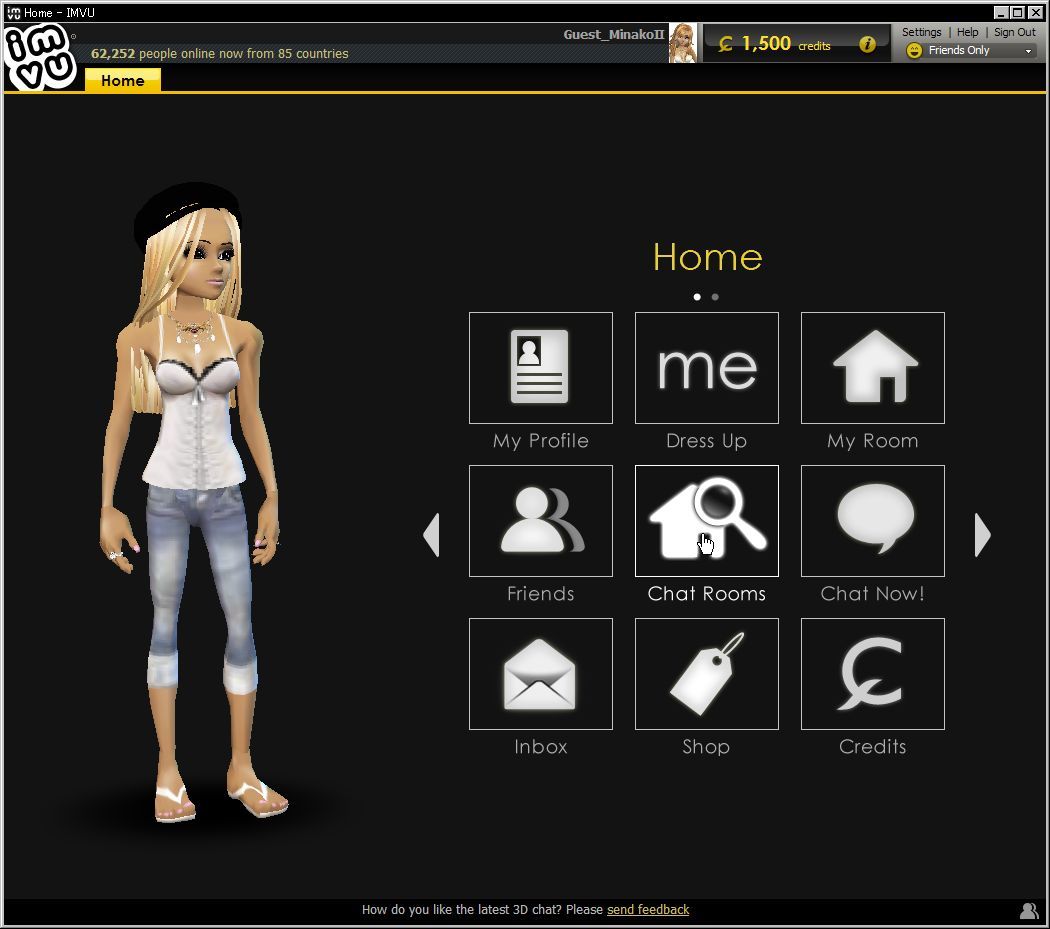IMVUが起動されると最初に上のような画面からスタートします。