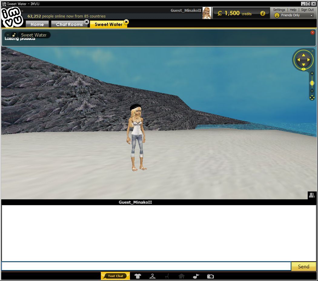 「GO」ボタンでパブリックルームへと入ると、最初はお部屋のデータが読み込まれるのに、少々時間がかかります。Loading中は画面上部に下の画像のような表示がされます。
