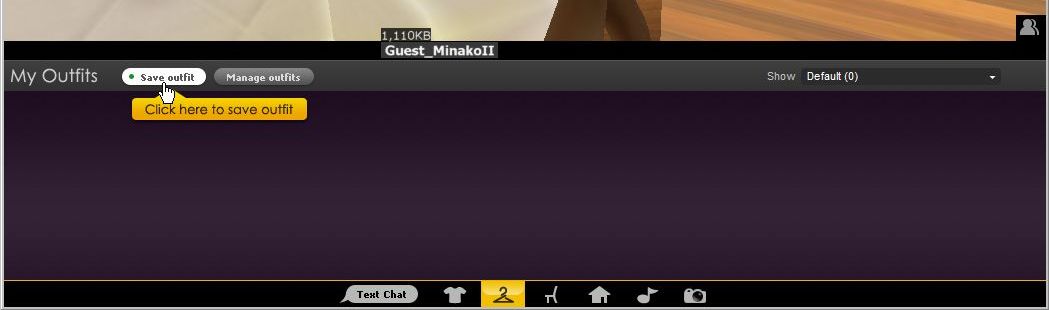 次に、「Save outfit」というボタンを押します。(もちろん、登録したい衣装や装備は、この時つけていないとダメですよー。)
