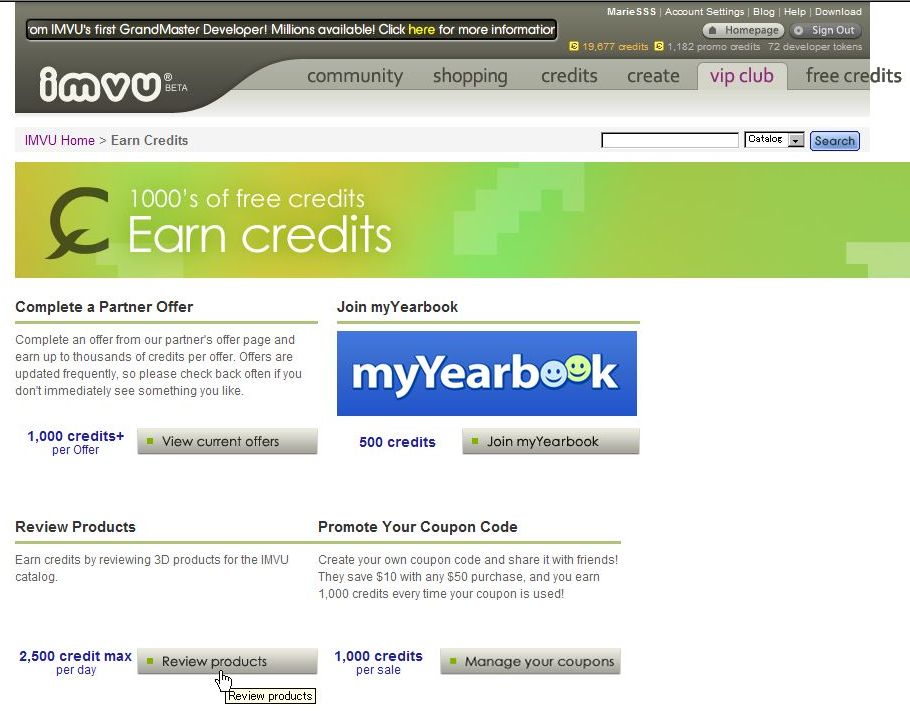 6/10にプロモクレジット入手方法に変更があったようですね。まずスピンフリーと呼ばれるスロットページがなくなりました。また必ず50プロモクレジットを受け取れる新商品案内も無くなってしまいました。残された方法のうちかろうじて使えるのが「Review Products」でしょうか。これは、多数のクリエイターがカタログにアップする前に、その内容が適正なものかどうかをチェックするシステムです。