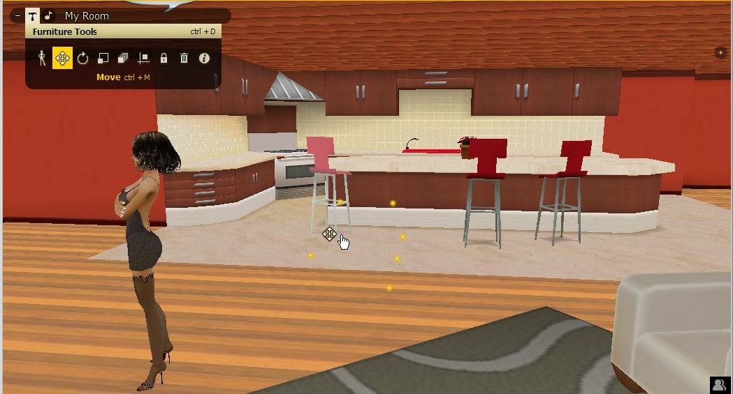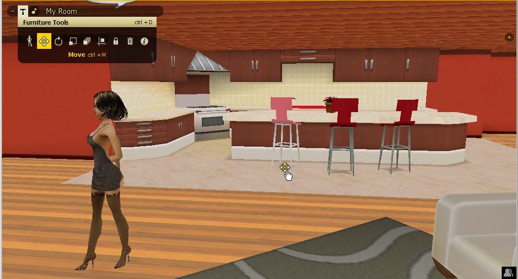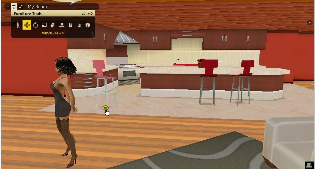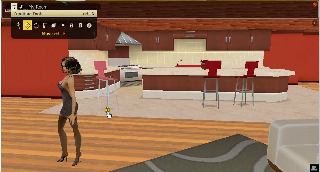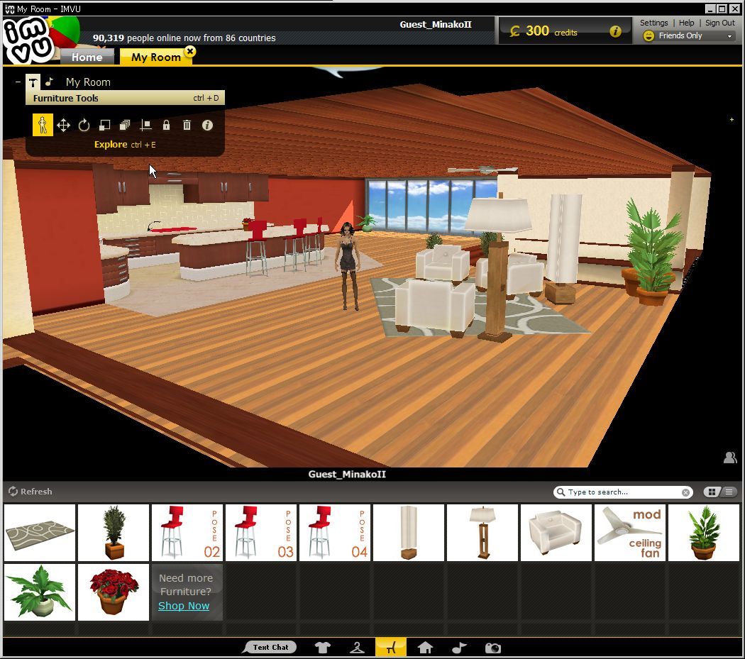 そうすると、IMVUメイン画面に、「Peer Review」というタブが現れて、お部屋の中を動き回って試すことが可能になるのです。