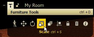 左から4番目のアイコンは、「拡大・縮小」です。家具には人のポーズとセットになってるものが多いので、分別なく拡大・縮小していると、そこに移動したときに人物が大きくなったり、小さくなったりするので注意。